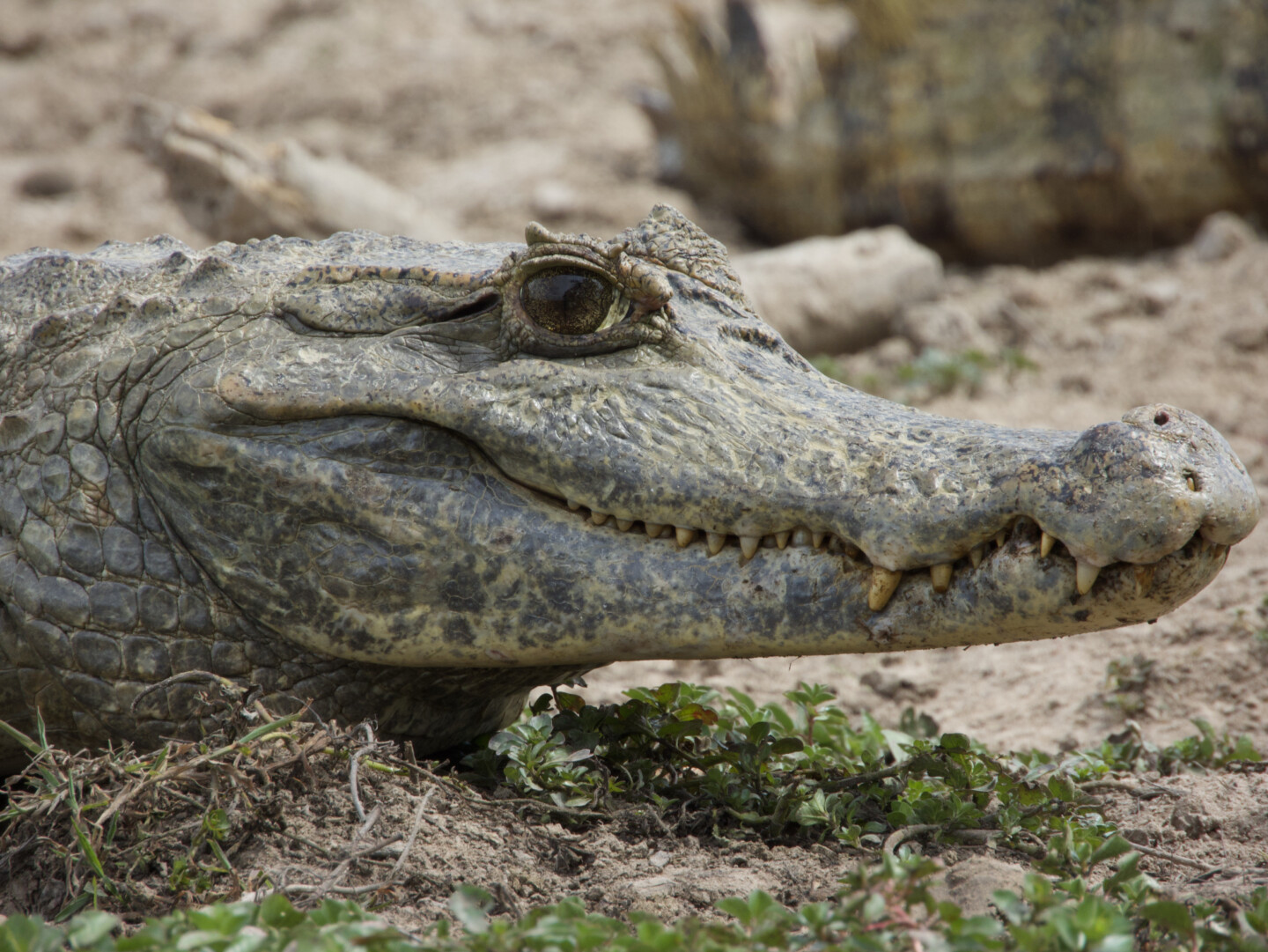 The Black Caiman (Melanosuchus niger) is an apex predator with a diet that mainly consists of fish, including piranhas and catfish, but its opportunistic feeding behavior allows it to consume a wide variety of prey. This large reptile also preys on birds, turtles, capybaras, and other mammals that venture close to water edges, and occasionally it captures and eats smaller caimans. Juvenile Black Caimans initially feed on invertebrates like insects and crustaceans before graduating to larger prey as they grow. One interesting aspect of their diet is their capability to hunt at night, utilizing their acute sense of sight and hearing to catch prey. Their powerful jaws and conical teeth are designed to grasp and hold prey, making them efficient hunters in their Amazon Basin habitat.