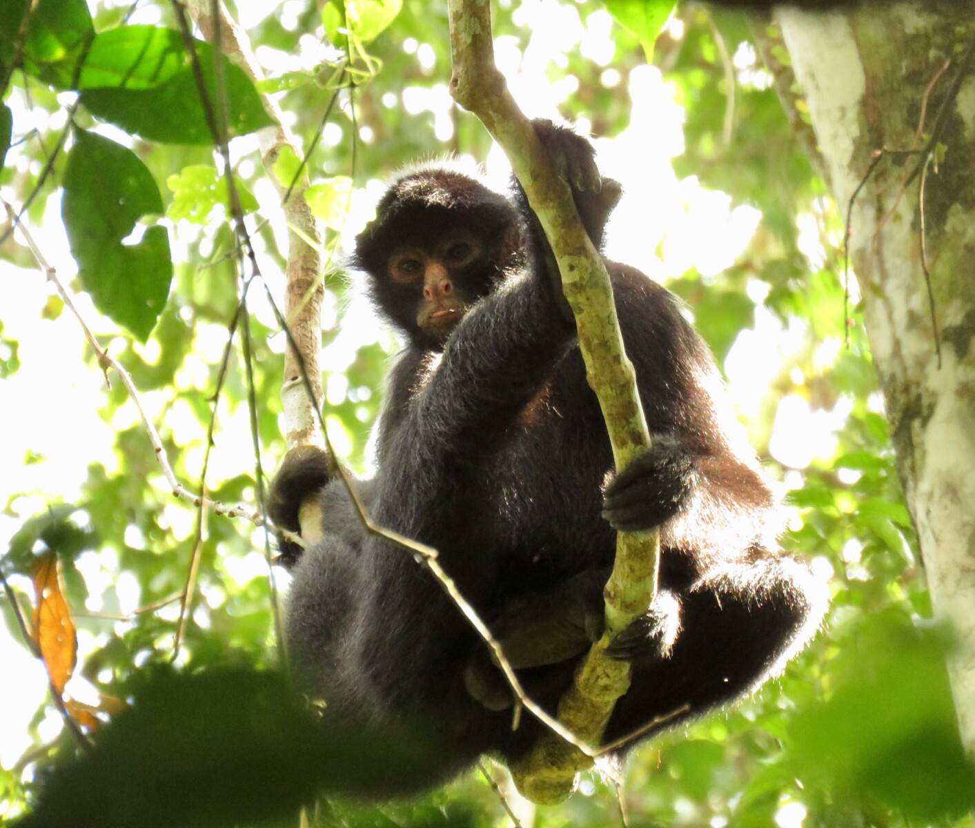 El mono araña negro (Ateles chamek) está clasificado como Vulnerable en la Lista Roja de la UICN debido al declive de su población, provocado principalmente por la pérdida y fragmentación de su hábitat, la caza y el comercio ilegal de mascotas. La deforestación para la agricultura, la tala y el desarrollo de infraestructuras reducen significativamente el hábitat disponible para estos primates arborícolas, mientras que las presiones de la caza aumentan su riesgo.