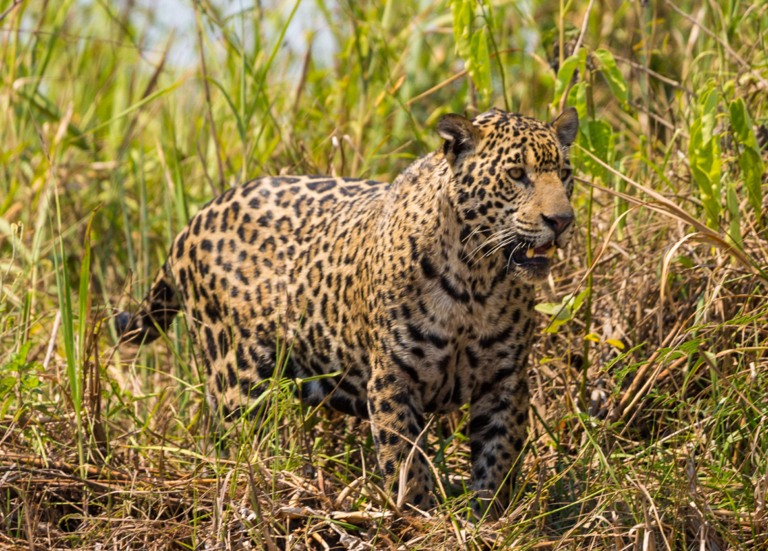 Día completo de Rastreo de Jaguares en el río Cuiabá y el Parque Encontro das Águas. Seguimos en el barco a lo largo del río buscando jaguares y otras especies representativas de la zona siguiendo al rey del Pantanal. También se pueden observar capibaras, caimanes, nutrias gigantes y muchas aves… También navegamos por el más secreto Río Piquiri. ¡La fotografía de vida silvestre es imprescindible!